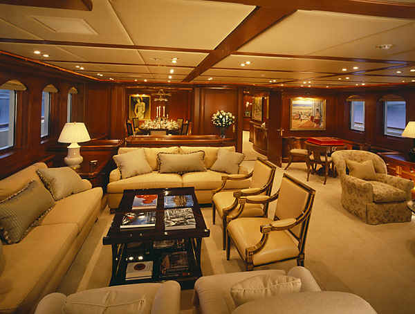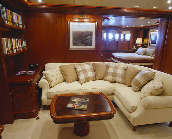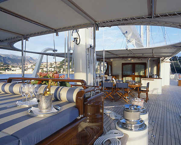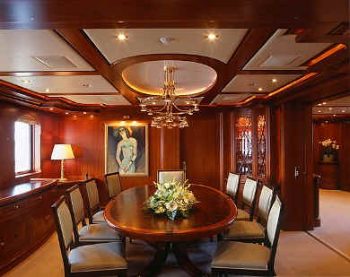 Main deck with formal dining salon, main salon with wet bar and an alfresco