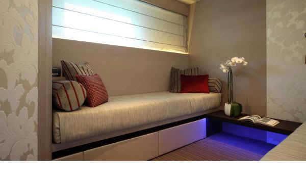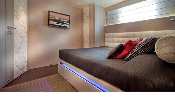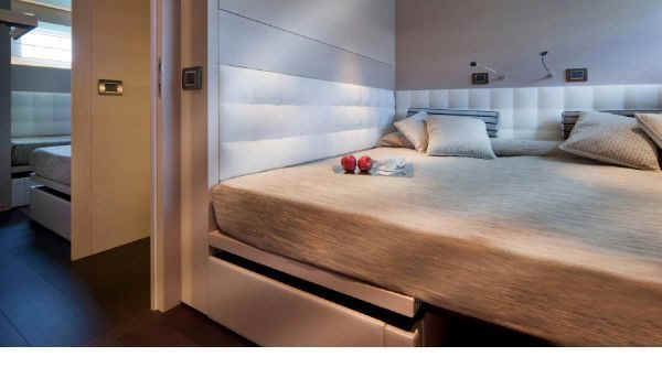 The 5 cabins on the lower deck include the full beam master suite, 2 doubles and