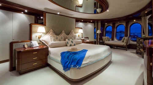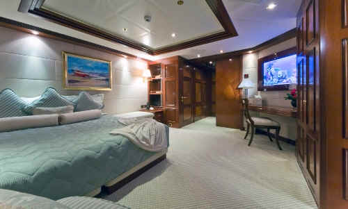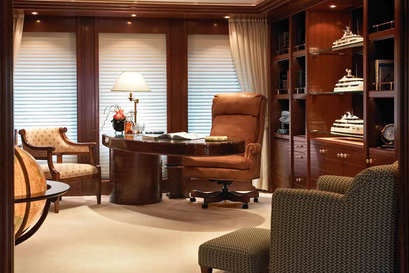 Owner’s office and Owner’s gymnasium, she offers five guest staterooms. The