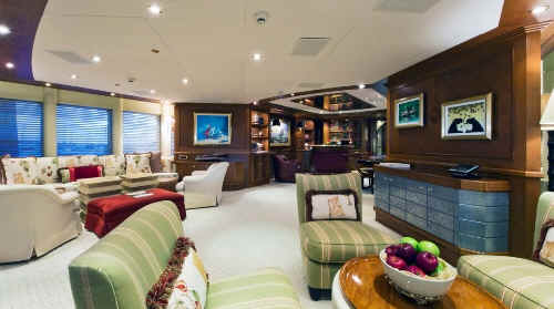 Upon entering the BRIDGE DECK LOUNGE you will be received by the full wet bar, a