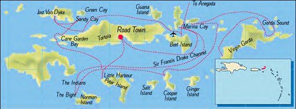 The British Virgin Islands are grouped around the Sir Francis Drake Channel.