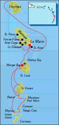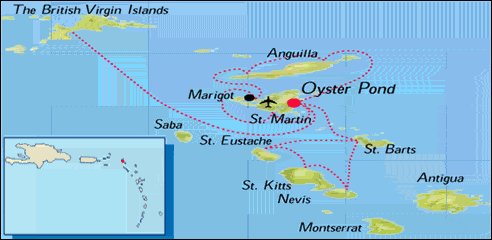 St. Martin -- Half French and half Dutch, this island has a split personality. The Dutch side is home to the casinos and duty free shopping; French Marigot Bay is charming - lots of lovely cafes and lovely anchorages. Visit the stunning La Samanna resort here for dinner.