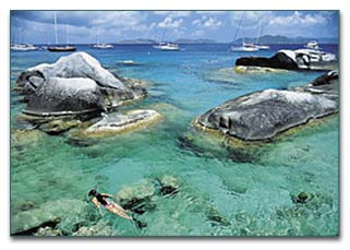 Virgin Gorda -- A favorite stop-over with lovely beaches, home to Biras Creek resort and the Bitter End Yacht Club, this picturesque island offers beautiful beaches. A must is a visit to "The Baths", formed by an ancient volcano, this unique rock formatin offers caves with private swimming grottos.