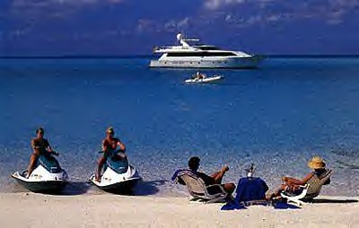 Sleek and stylish, this lovely Westship is an exceptional charter yacht. Beautifully furnished in a soothing, sophisticated color scheme, Destiny is as equally suited to providing the finest in quiet relaxation as she is to offering active charter guests the time of their lives enjoying one of the many water toys on board. Enjoy gourmet meals in the casual country kitchen setting or in the formal salon, or pack a picnic for a day exploring the beach. Full wet bars in the salon and fly bridge make entertaining easy. SatCom and cellular telephone and fax, satellite TV with receivers in salon and all staterooms, entertainment systems throughout, guest safe in master stateroom, 15' Novurania tender w/90hp engine rigged for fishing and water skiing, fishing gear, snorkel gear, 2 Yamaha WaveBlasters, kneeboard