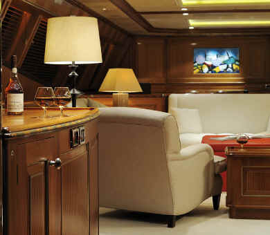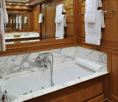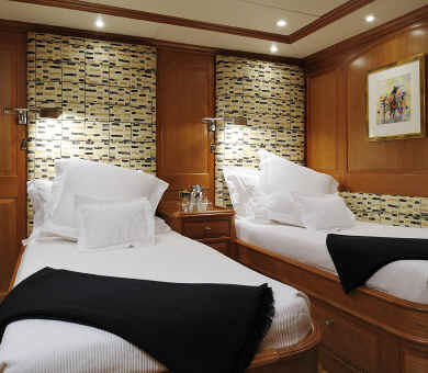 Guest cabins include 2 identical double cabins with seating area and en-suite
