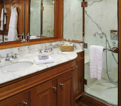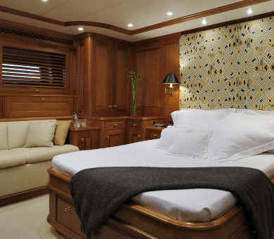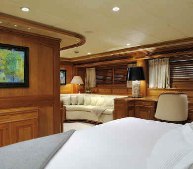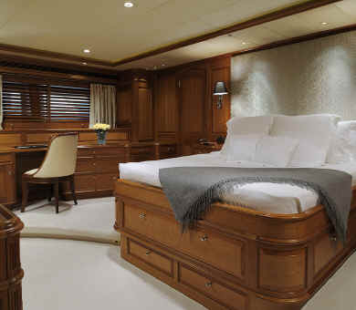 The full width Owners' stateroom with King sized bed is extremely spacious. It