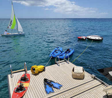 wakeboard, waterskis, double doughnut, 1 windsurfer, 2 Sea kayaks, 16 sets of