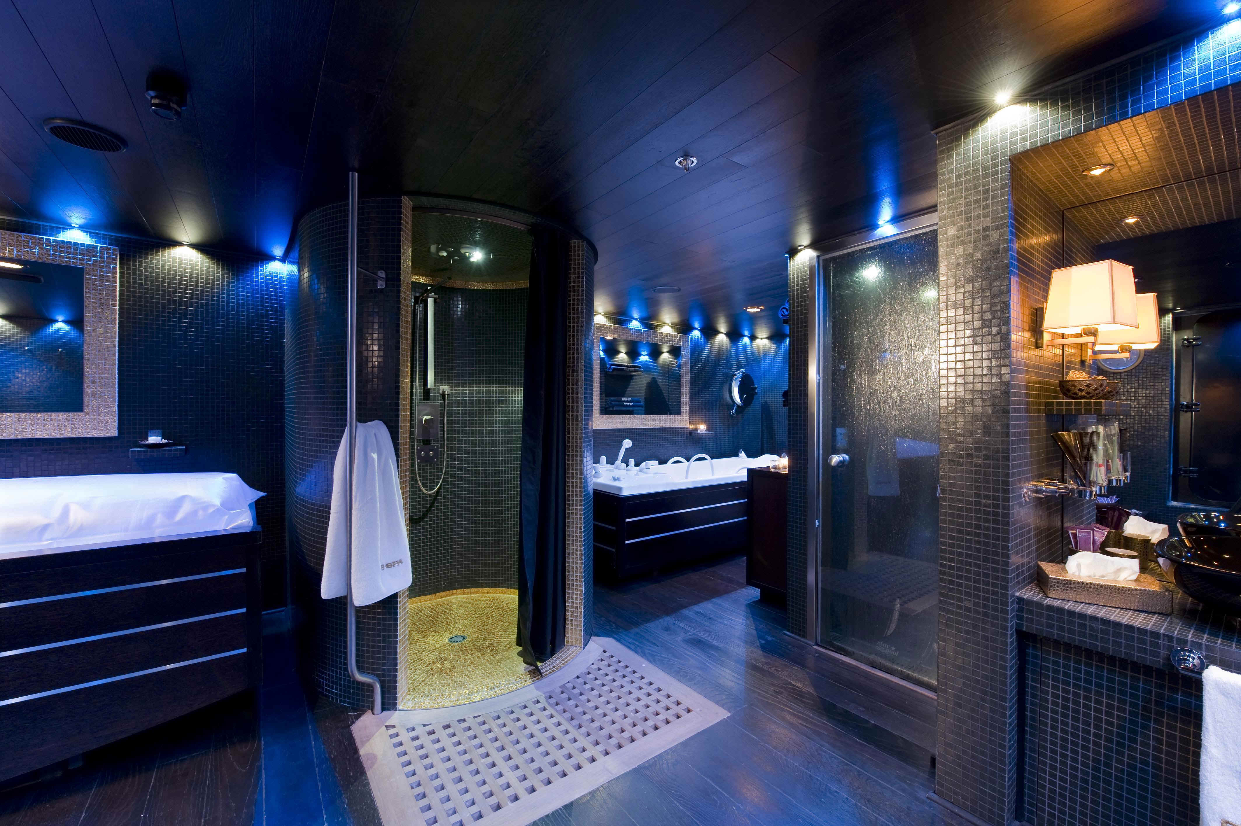 The yacht FORCE BLUE HAS AN AMAZING SPA WITH 6 DOUBLE STATEROOMS, JACUZZI ON SUNDECK, CINEMA, A FORWARD SPACE THAT CAN BECOME A DISCOTHEQUE