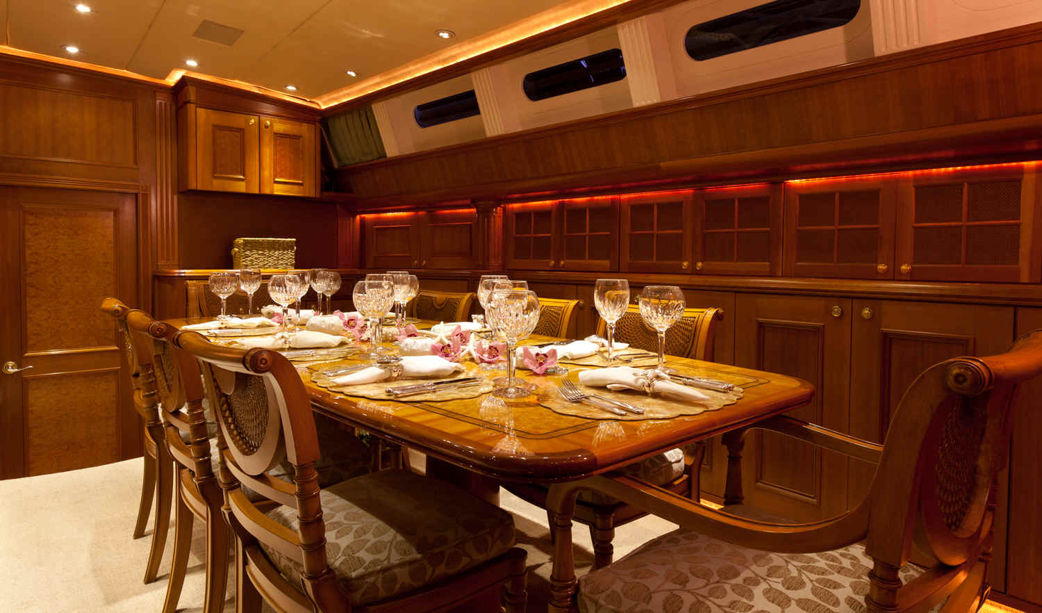 8-9 guests, 6 crew