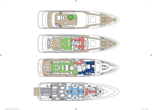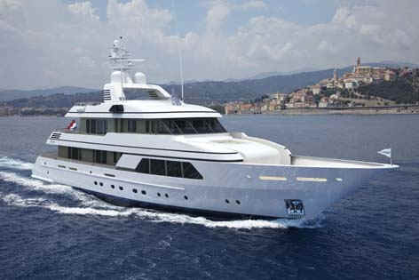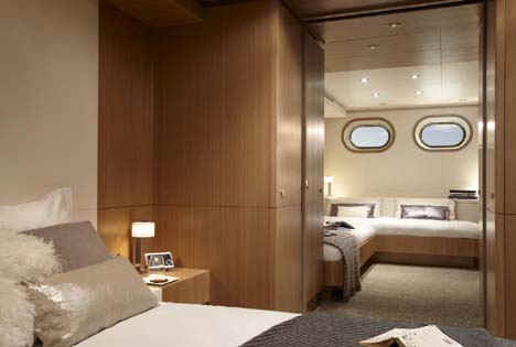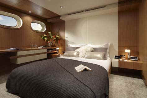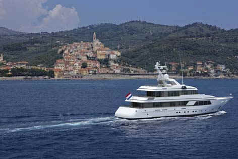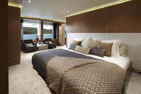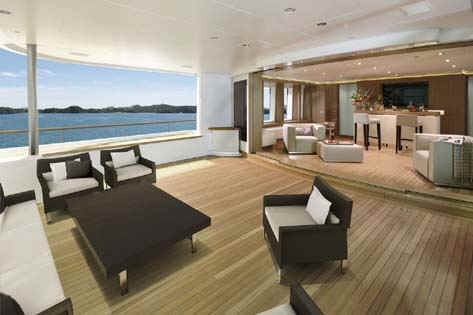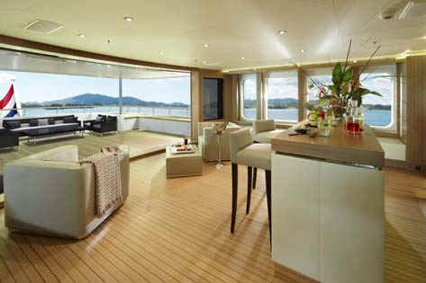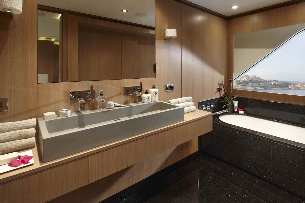 “GO” is brand new and certainly is the most comfortable and sophisticated 40m yacht afloat. In terms of volume, GO is probably also the largest 128-foot (39m) luxury motoryacht available for charter. Built to the same standards of attention to detail, finish, and technology as much larger Feadships, she has everything a guest could wish for provided in quite a compact package for a megayacht. Her size ensures guests will enjoy the most romantic anchorages or the best berths at the marina. She has a stunning natural teak interior with a contemporary and modern feel. In addition to the full beam master suite on the main deck, the four guest staterooms on the lower deck are convertible into two full beam VIP suites. The full beam bridge deck lounge and large aft bridge deck offer great entertainment opportunities. The large swim platform that folds down from the transom serves as an extra deck near the water level, and a place for the crew to setup a beach club.