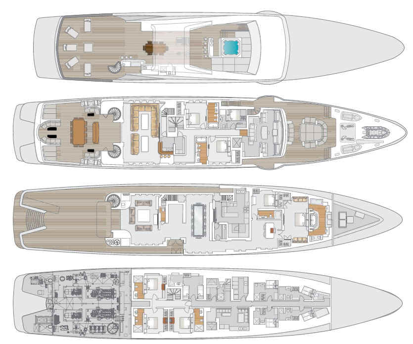 double cabins on three levels makes her incredibly versatile whilst also