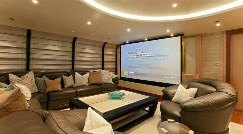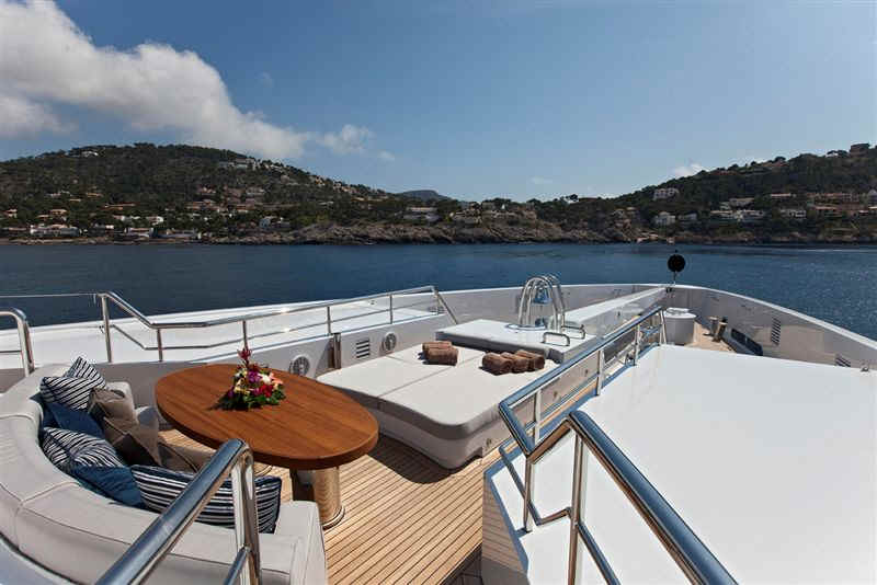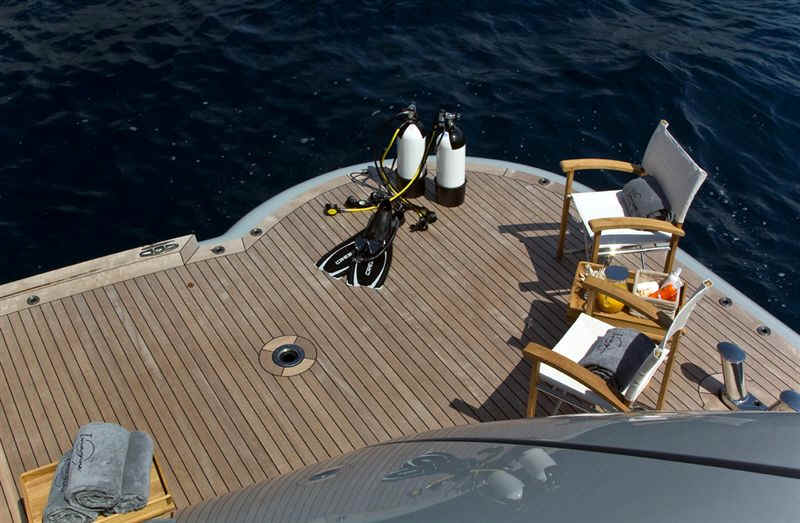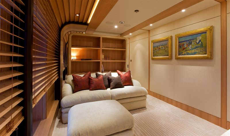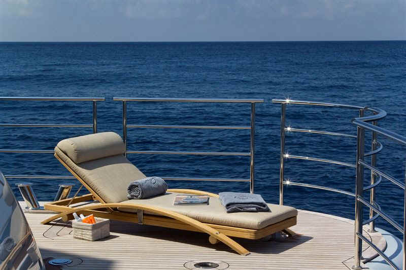 While forward, in front of the wheelhouse, a cozy nook awaits guests who prefer