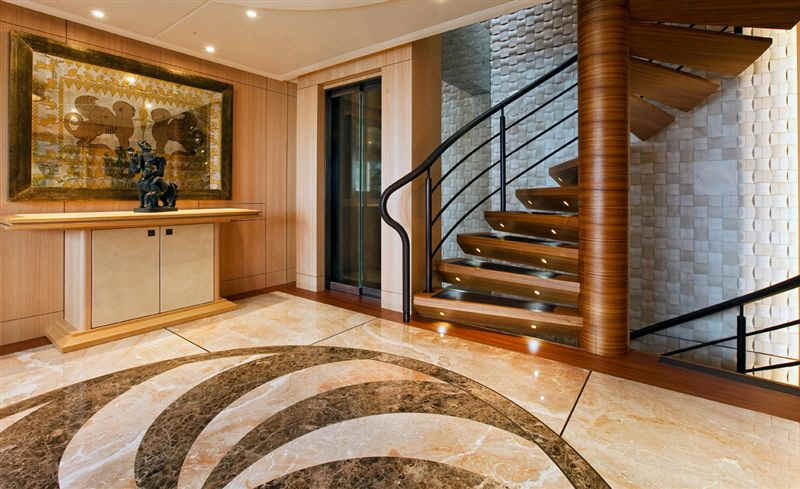 A central elevator serves guests from the Lower to the Sun Deck, in parallel
