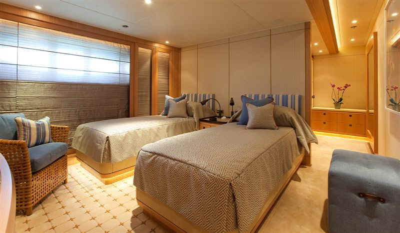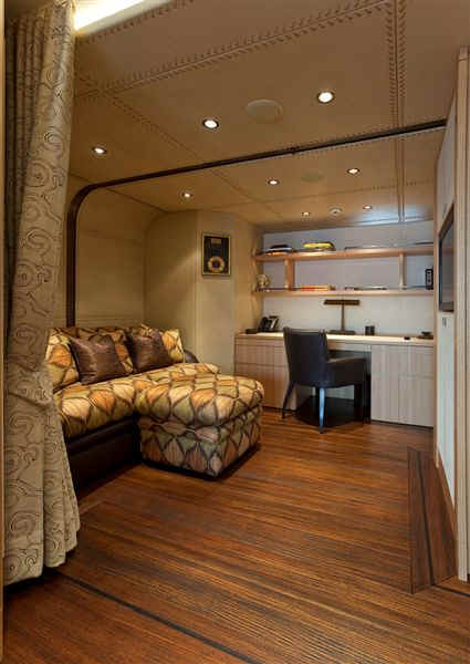 Deck, four grand suites accommodate guests. Two are planned as full doubles of