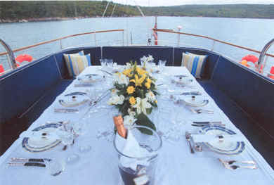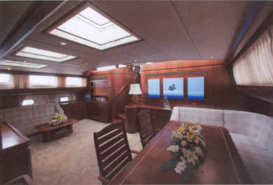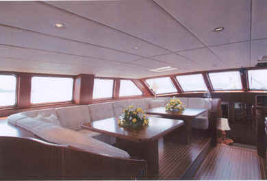 The prominent deck saloon, which houses the formal dining area seats ten