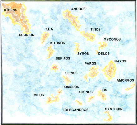 windswept Cyclades are in the central Aegean, beyond the Northern and Eastern