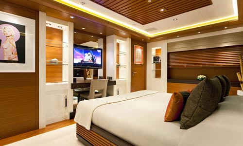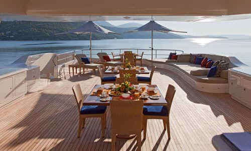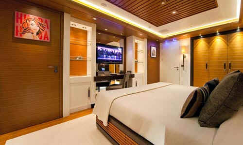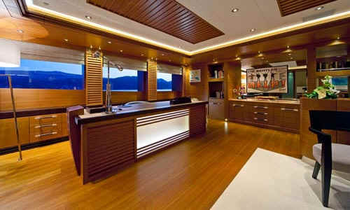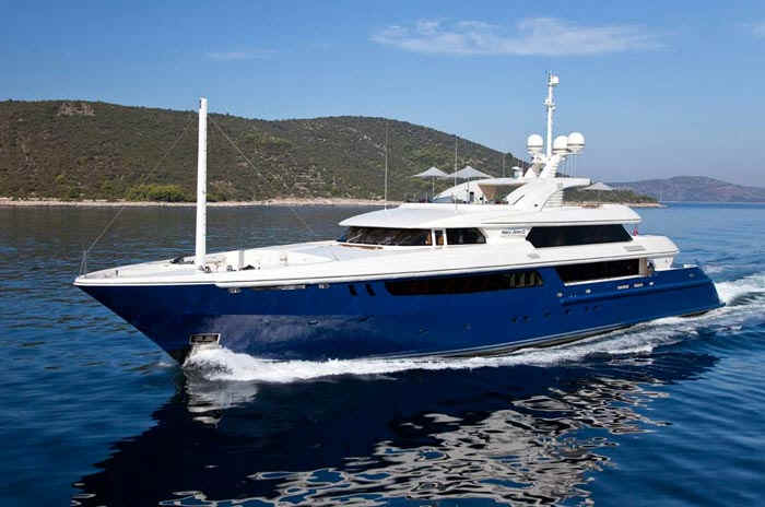 Launched in 2010 MARY-JEAN II is a stunning piece of craftsmanship from renowned Italian shipbuilder ISA. With her striking Aristo blue hull, this 62 metre new-build utilizes the very latest technology, design and Italian craftsmanship with a contemporary interior design by Mark Berryman. Twin Caterpillar engines take MARY-JEAN II to a top speed of 17 knots with a comfortable cruising speed of 14 knots. Her tenders and toys are stored neatly out of sight, leaving her spacious and beautifully-appointed deck areas dedicated to sunbathing, dining and total relaxation. For those who prefer a more active lifestyle, there is a wide range of brand new water sports equipment as well as a dedicated gym in the stern, with access to the large swim platform and the sea. MARY-JEAN II can accommodate 12 guests in 7 staterooms and is run by a crew of 16