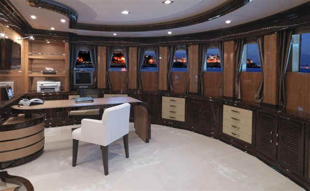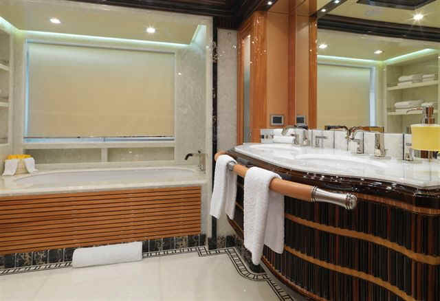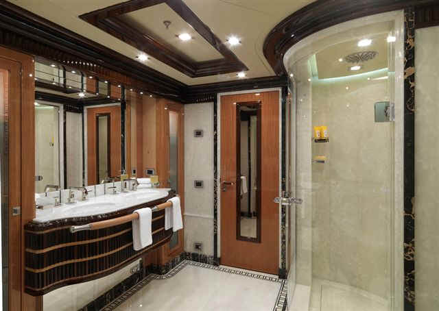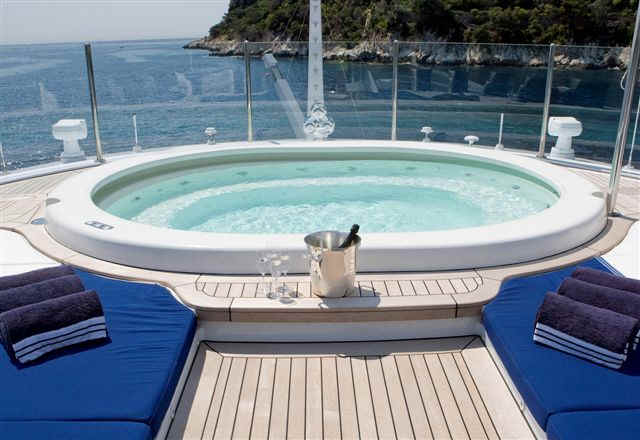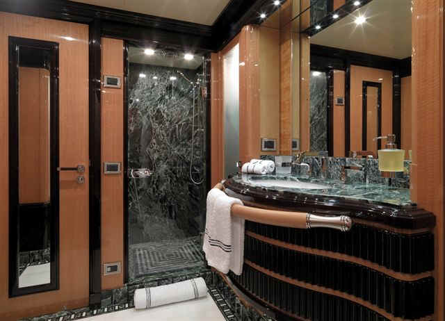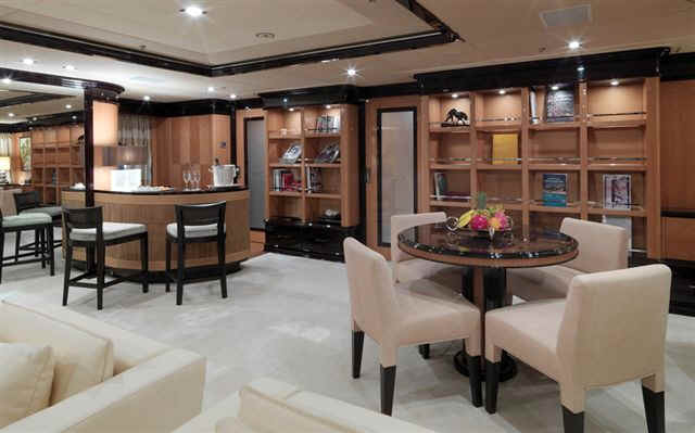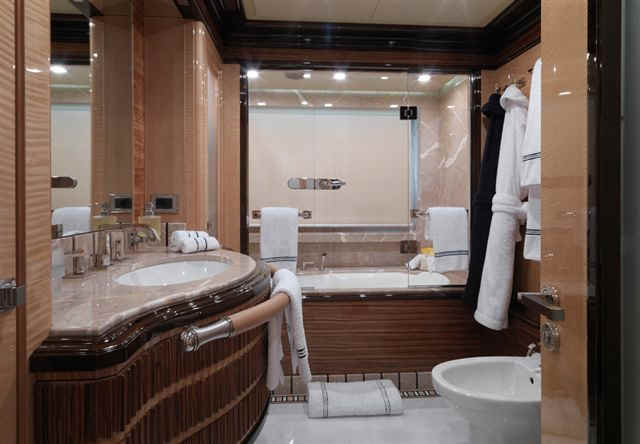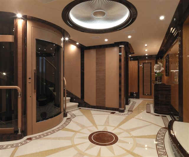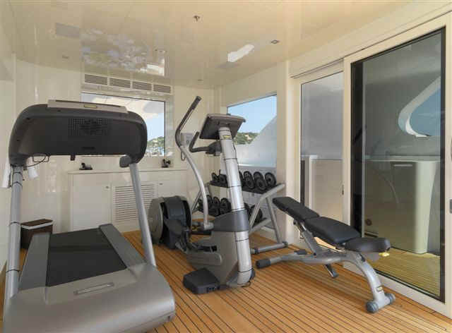 size, including an elevator and impressively-equipped gym on the sundeck. Her