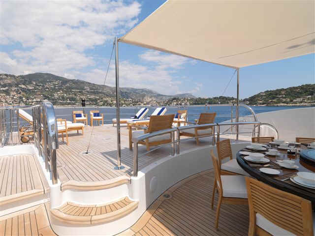 and highly experienced crew of 15. Her spacious decks are perfect for al fresco