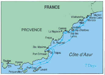excellent anchorages. This area typifies the French Riviera or Côte d’ Azur,
