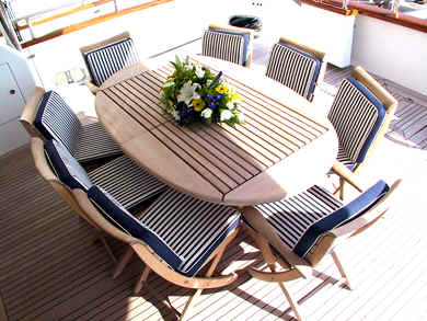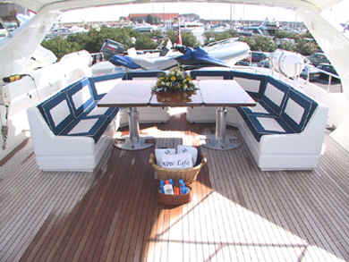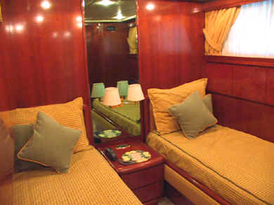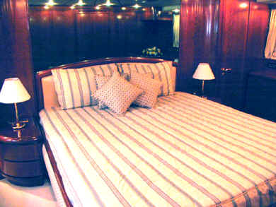 Sleeps 8 /10 in owner and guest quarters in four luxurious cabins aft, including two full width king cabins and two twin cabins. All cabins have marble countertops and fine maple floors all with en-suite bathrooms.