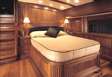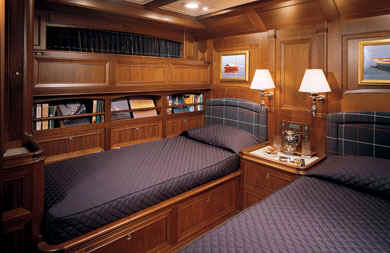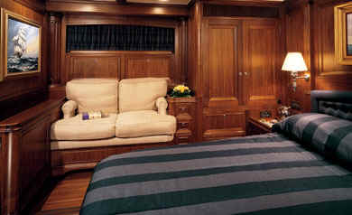 to the privacy of the 3 staterooms, where sumptuous fabrics and fine wood