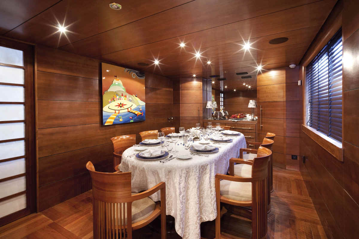 Her interior is vast and offers the luxury of a separate dinning room for those