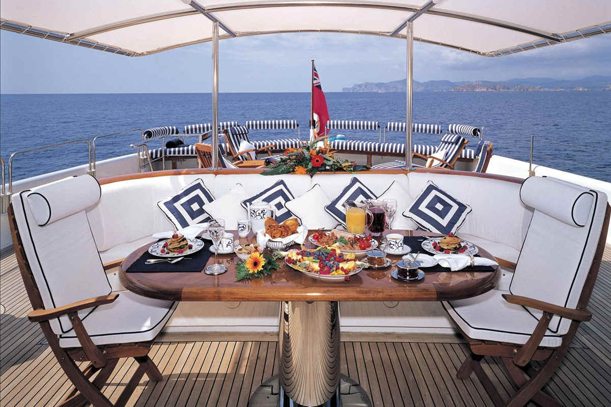 dining area for 8, Main salon, Exterior dining for 12, Exterior dining on upper