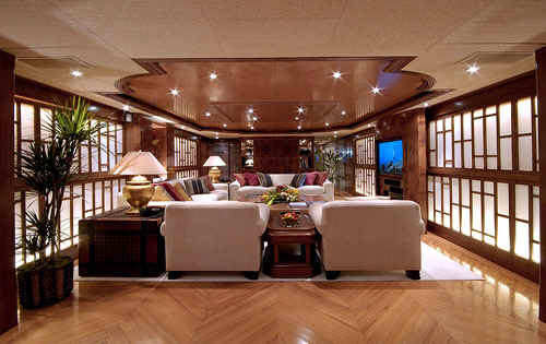 words to describe the saloon of Pollux, a room decorated with Japanese style