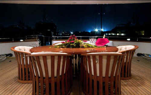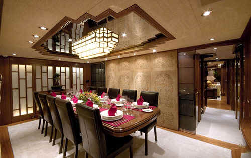 gives one the first feeling of luxury provided onboard. Her spacious table is