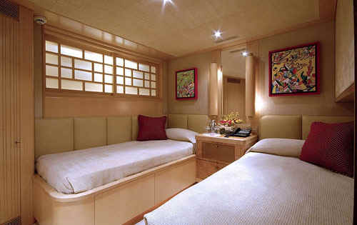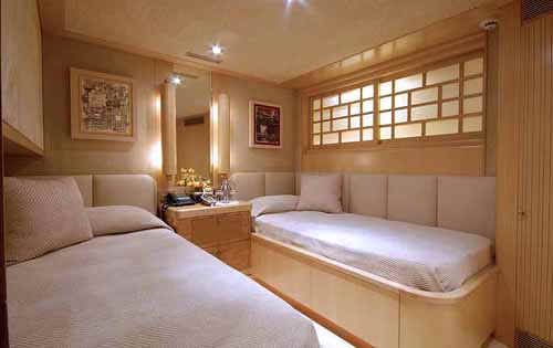 furniture. The choice of soothing colors in the twin cabins gives the sense of