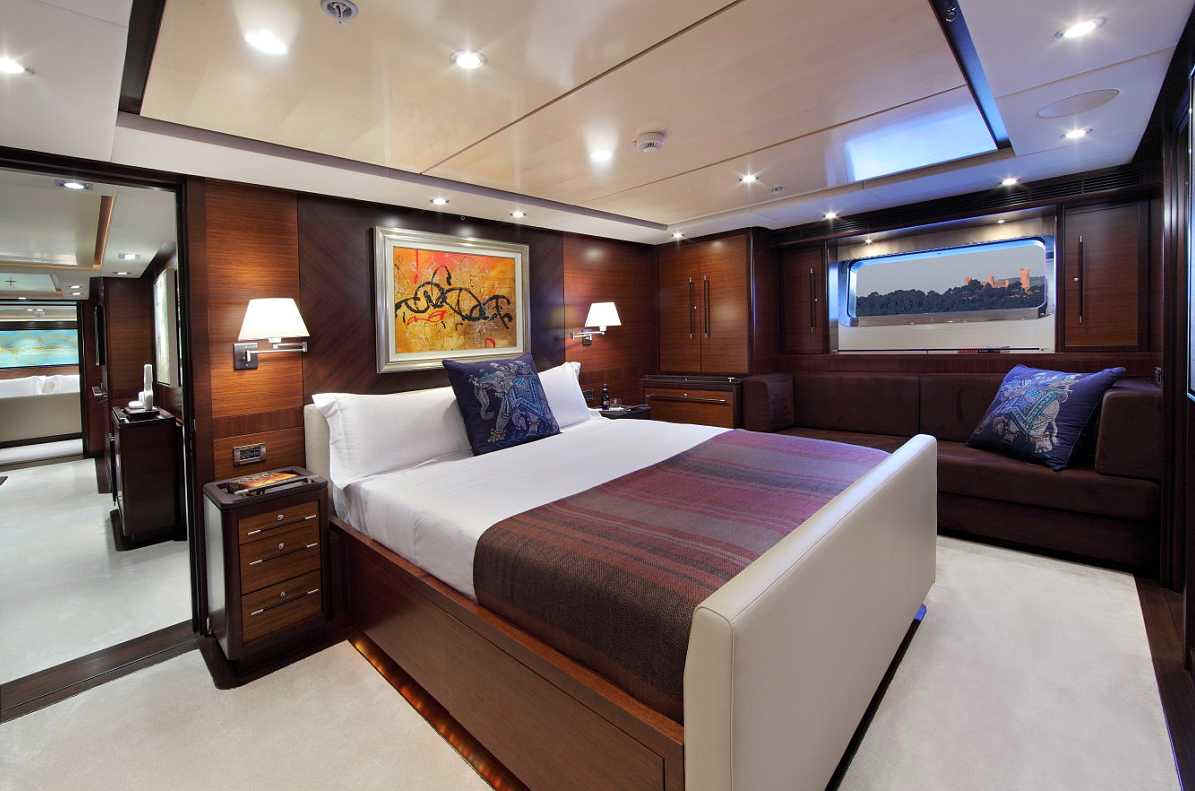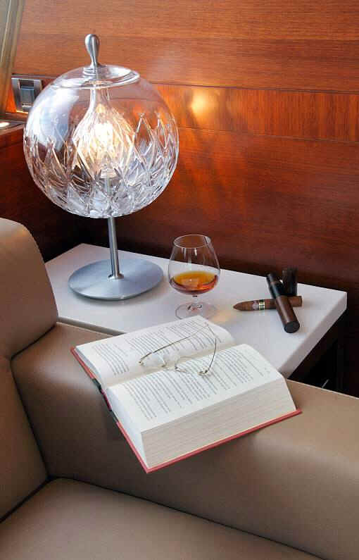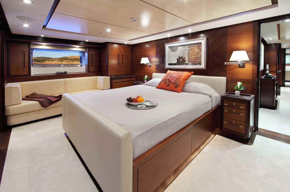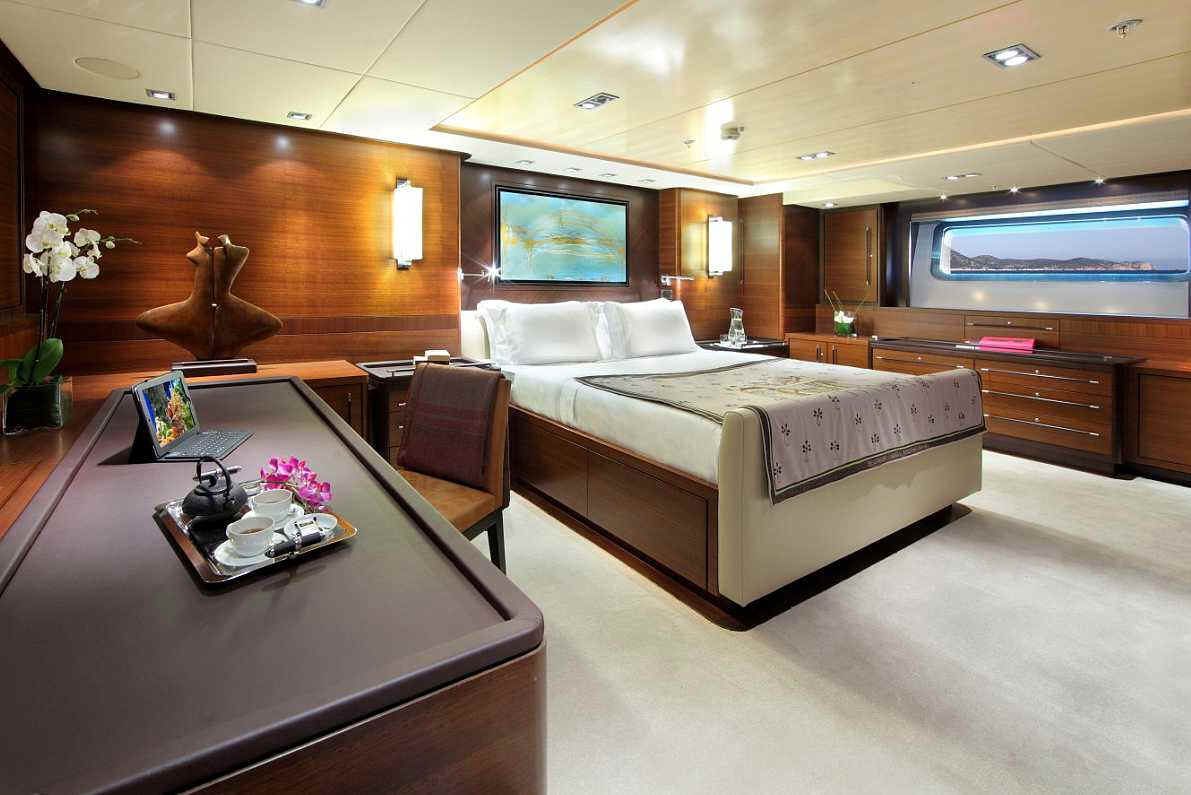 centerline with a leather top desk to starboard and leather top chest of drawers