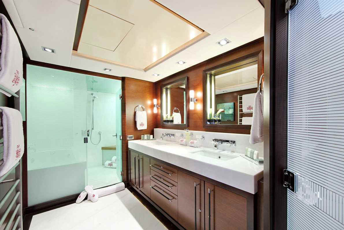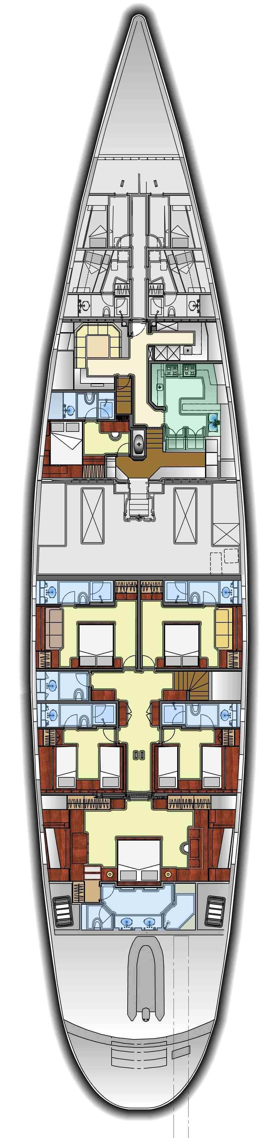 with two twin cabins, all with ensuite bathrooms are positioned forward of the