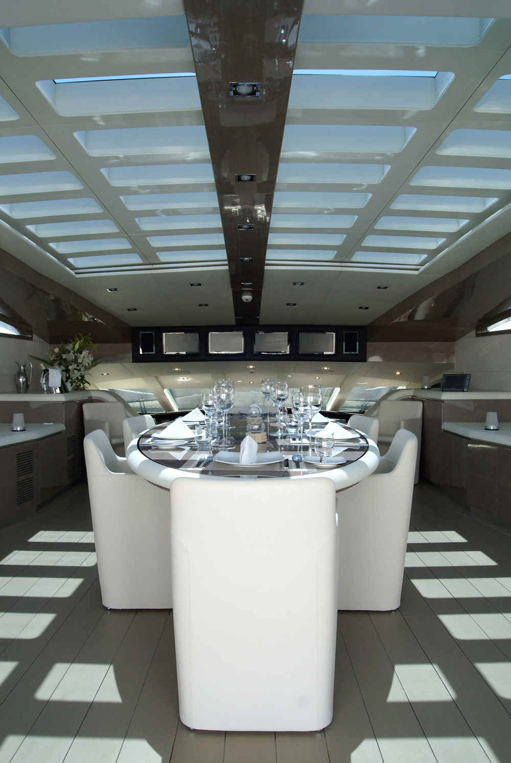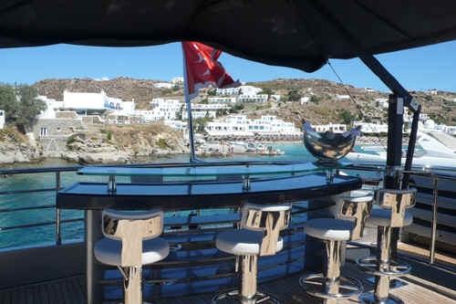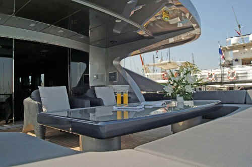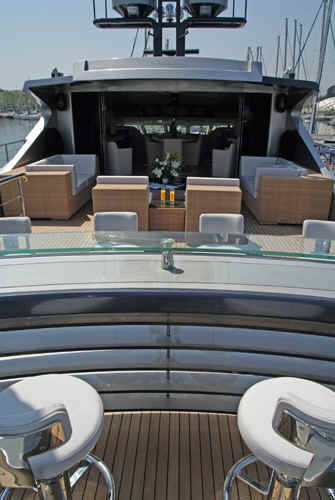 * UPPER DECK AFT: bar area for six and umbrella, cushioned settees and