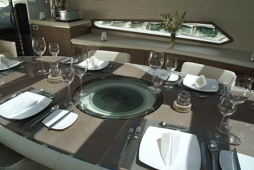 fine china adds an extra touch of elegance; pilothouse forward.