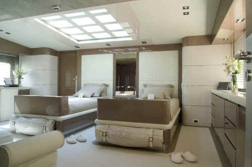*MAIN DECK Master Stateroom with two Twin beds, built in TV's in the footboards