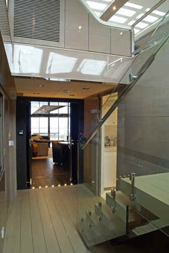 * UPPER DECK FORWARD: spacious sunning area with large sunbeds and seating.