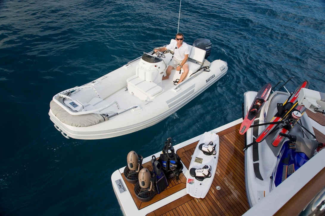 TOYS: 5.2m Nautica Tender,3 person Jet Ski VX 1100cc, 3 person Banana, Kayaks (one 3 man, one 2 man), Donuts (two 1 person), Sumo tube, Wakeboard, Waterskis (adult and mono ski), 2 Sea Bob under water scooters, Fins, Masks, Snorkels, wetsuits, Safety equipment including vests and helmets, Fishing rods (rods and reel as well as assorted tackle), beach toys (Volleyball, Soccer ball, Rugby ball)