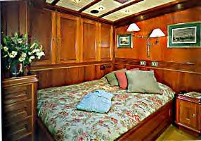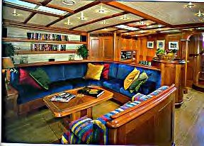 inlaid with mahogany. The saloon, which includes a bar, is very spacious