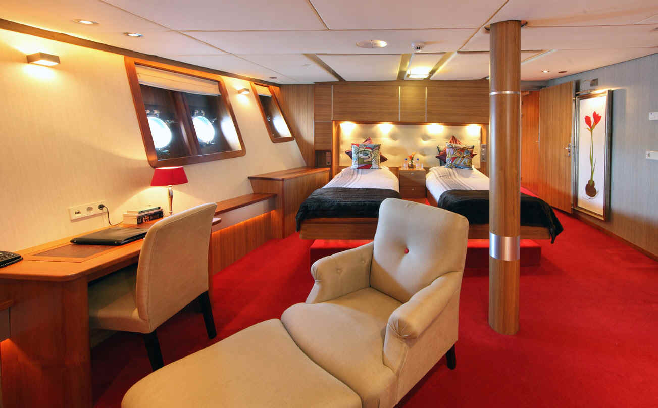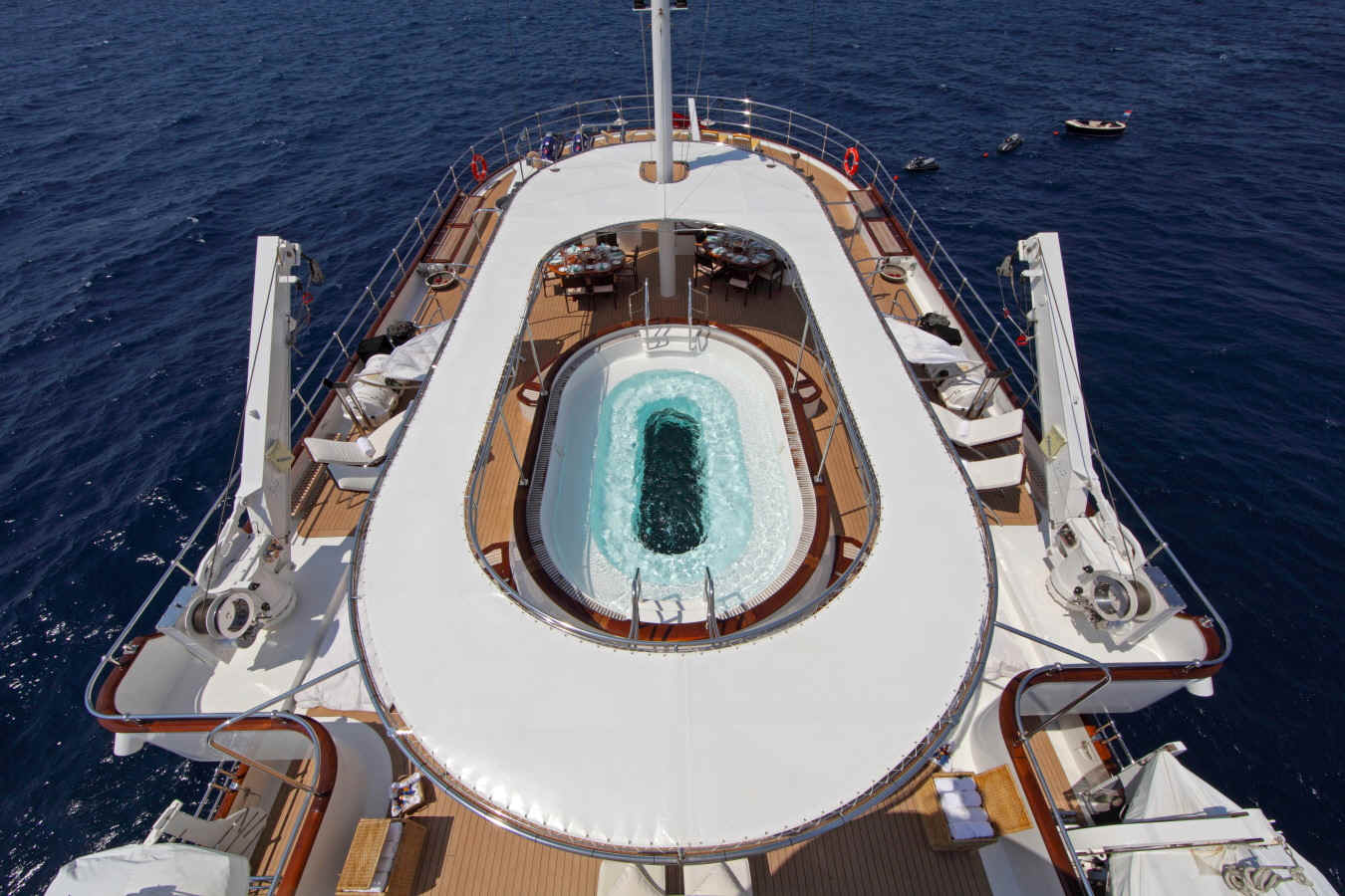 perched above the sundeck a massive 20m above the water line. Suites range from