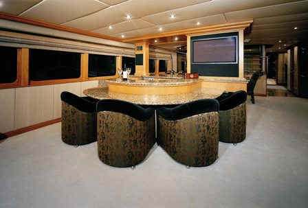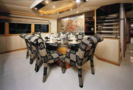 elegant SHOGUN, 122' Flagship, has a new Asian look to her interior that gives