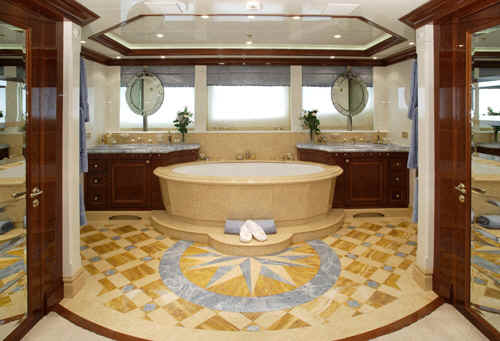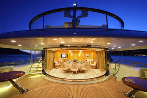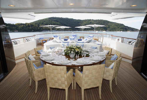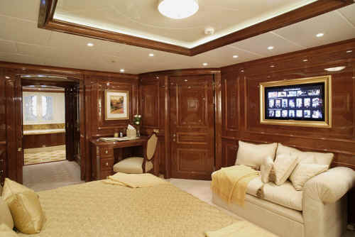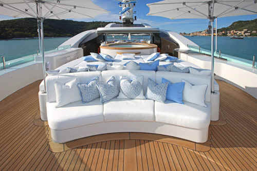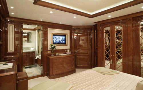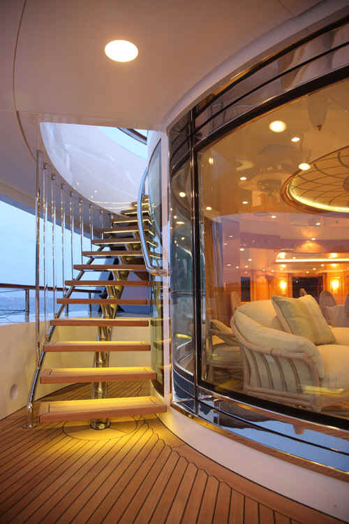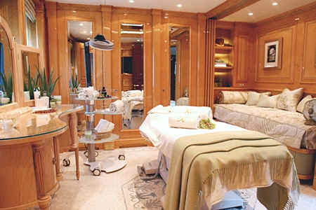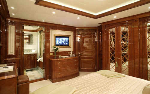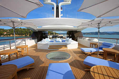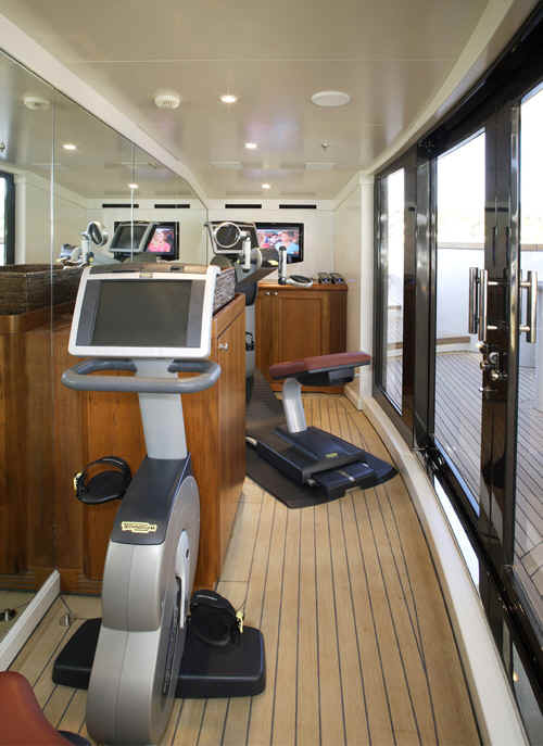 The yacht St David features state of the art AV system with Apple TV movies on demand, based on iTunes, Sky and US satellite TV reception throughout yacht, Disco, bandstand on sundeck, portable karaoke and smoke machine, Large jacuzzi on sundeck, Gymnasium on sundeck, Bar and Tappenyaki grill, the two forward sun pads conceal a pair of Woodway running machines, out in the open air, facing over the bow.