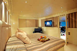 SUPERFUN sleeps 10 guests in one master suite on the upper deck and three queen