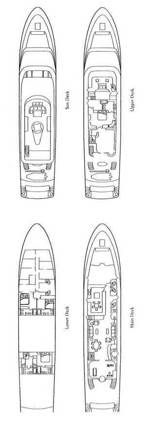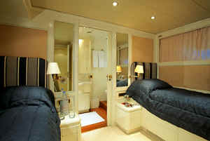 staterooms on the lower deck plus one twin guest cabin. All cabins have an