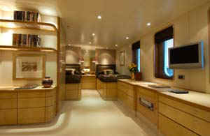 The entire yacht is furnished in an English contemporary style using beech and