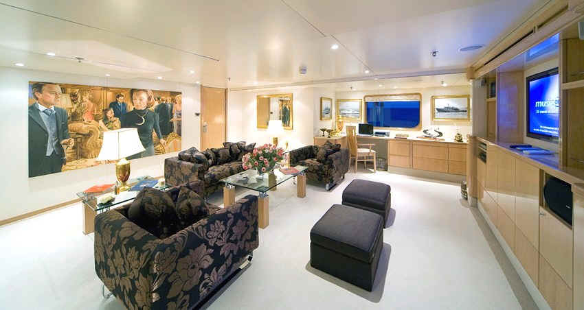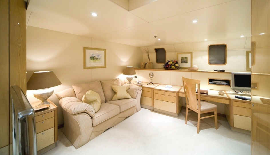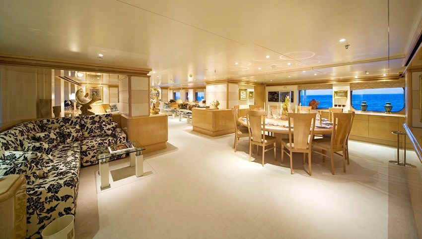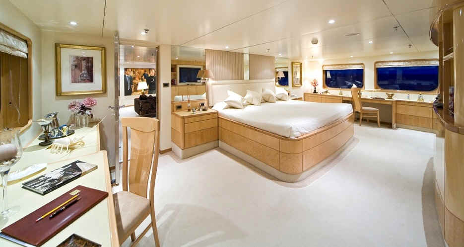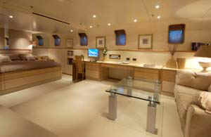 The yacht has a state-of-the-art audio-visual entertainment system throughout.