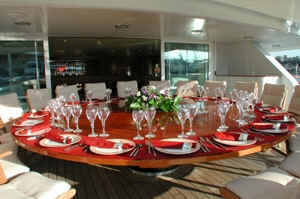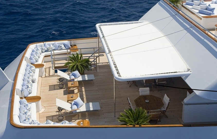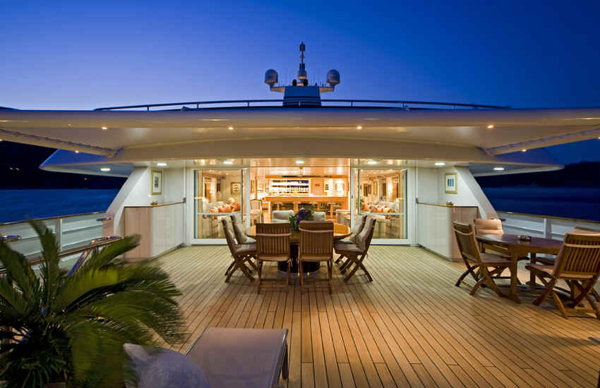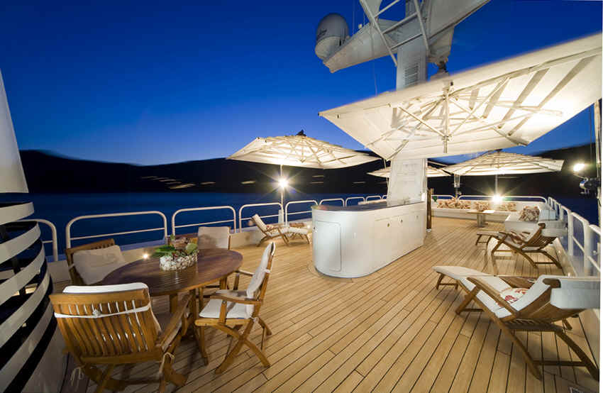 Main deck exterior dining can seat comfortably 18 guests.