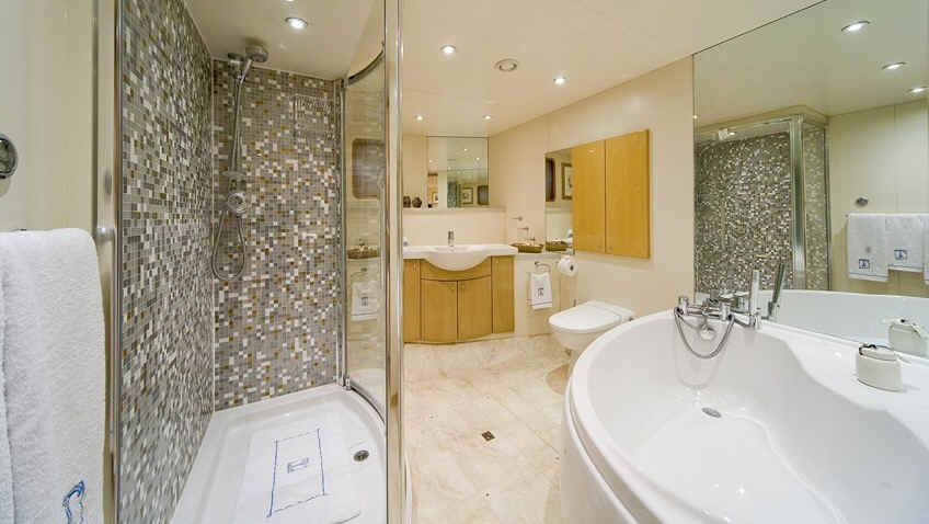 Titan sleeps 22 guests in large and light staterooms, including a 90 sqm master