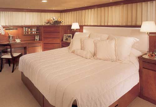 This 90' Stephens motor yacht was designed for comfortable cruising, gala entertaining and serious relaxing - with a level of service to please the most discriminating clientele. Her spacious accommodations for eight in four double staterooms are incredible proportions. The master and VIP suites have king size beds, stereo, color TV and full baths with Jacuzzi tubs.