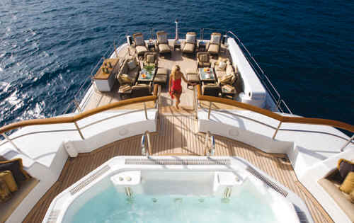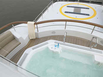 shower. Jacuzzi and private owner’s deck forward with seating around.